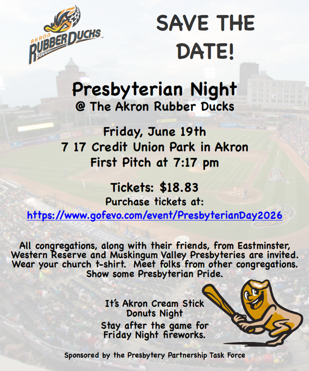 We invite you to join us in praying for a particular congregation, committee, and validated ministry within Eastminster Presbytery each week in 2026 that God may bless their ministry and that the grace of Jesus Christ might shine through them.